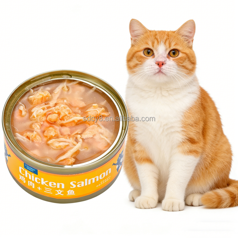 Chicken Salmon Canned Cat Wet Food Grain Free High Meat Moist Cat Food Canned Natural Ingredients OEM Custom