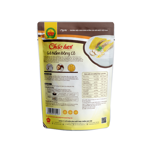 ข้าวต้มไก่และเห็ดหอมสำเร็จรูปพร้อมรับประทานปราศจากสารกันบูดในถุงจากเวียดนาม