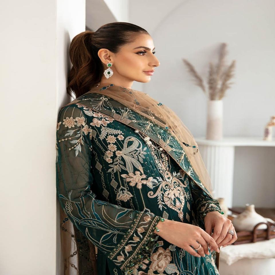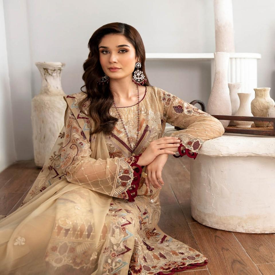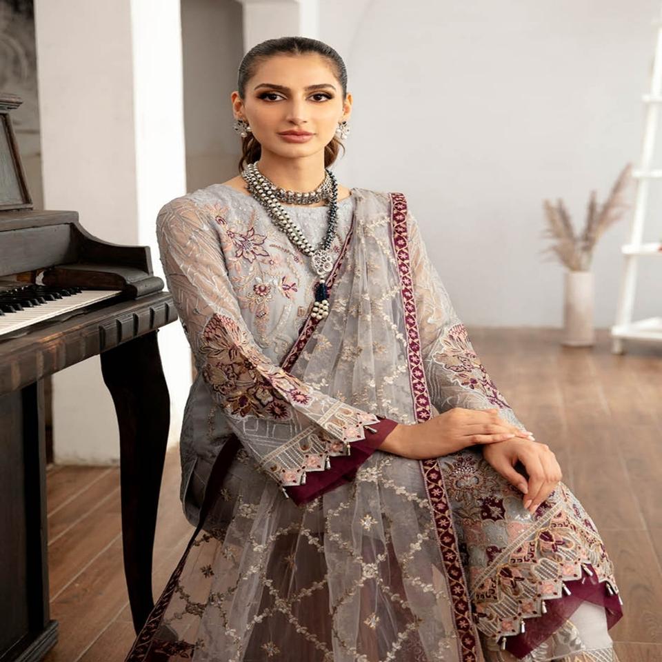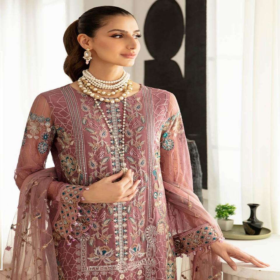 Ramsha ชุดเดรสปาร์ตี้ผ้าชีฟอง3ชิ้นของคอลเลคชั่น R-11สำหรับผู้หญิงสำหรับงานเทศกาลงานแต่งงานชุดแต่งงานของผู้หญิงปากีสถาน