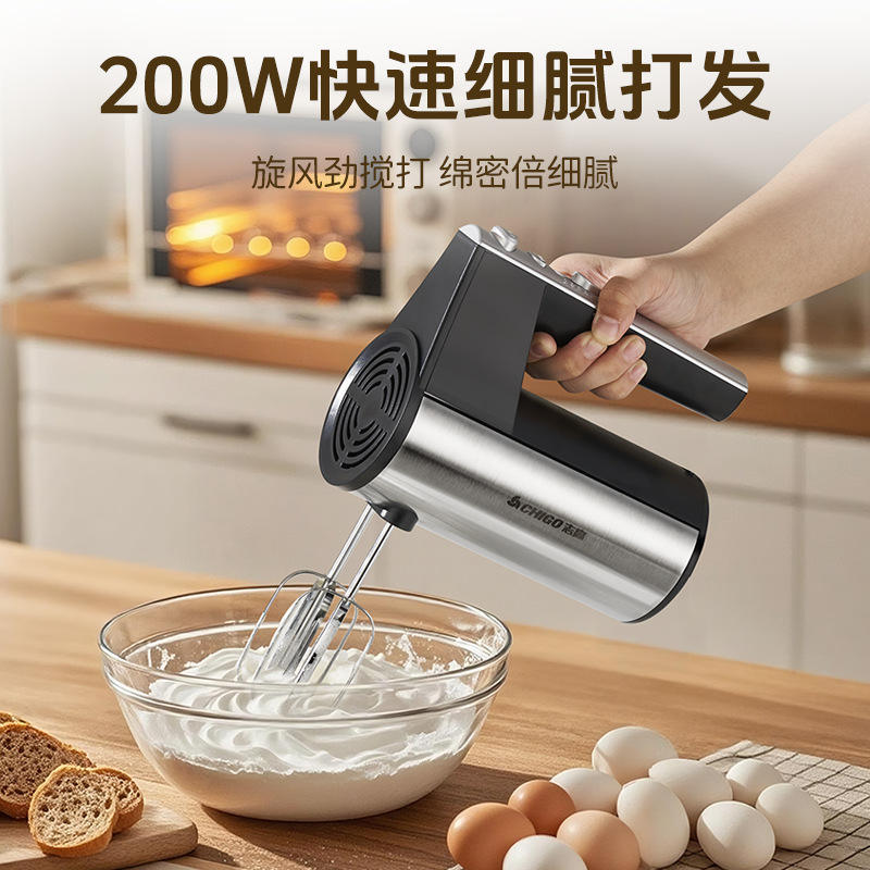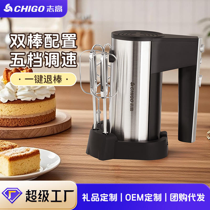 เครื่องผสมอาหารไฟฟ้าชิโก้ สแตนเลสสตีล หัวตีคู่ ปุ่มปลดล็อค หัวตีแบบลวด สำหรับทำเบเกอรี่ เค้ก และครีม