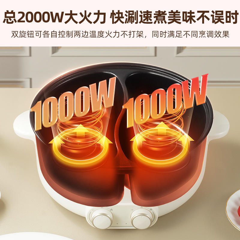 หม้อไฟสีขาวนวล 5 ลิตร พร้อมน้ำซุป 2 รส กำลังไฟ 2000 วัตต์