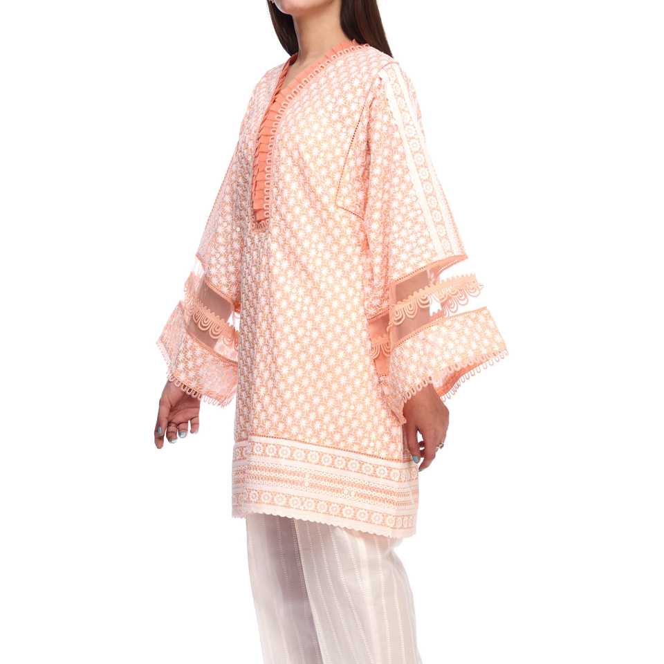 Chikankari เสื้อเบลาส์ผู้หญิงประดับ PS2149สีพีช