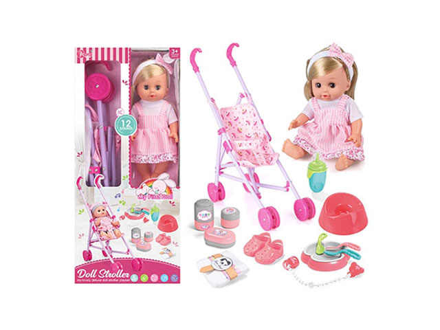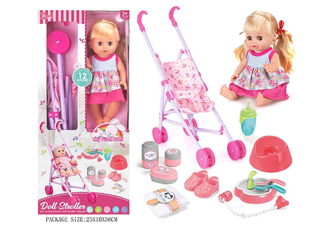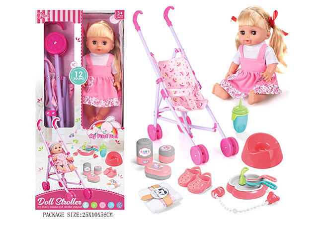 ชุดของเล่นตุ๊กตารถเข็นเด็กไวนิล14นิ้วสำหรับเด็ก,ของเล่นบ้านจำลองพร้อมฝาชักโครก12เสียงสำหรับเด็ก
