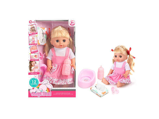 ชุดตุ๊กตาไวนิล14นิ้วสำหรับเด็ก,มีเสียง12เสียงพร้อมฝาชักโครกและขวดป้อนอาหารของเล่นบ้านสำหรับเด็ก
