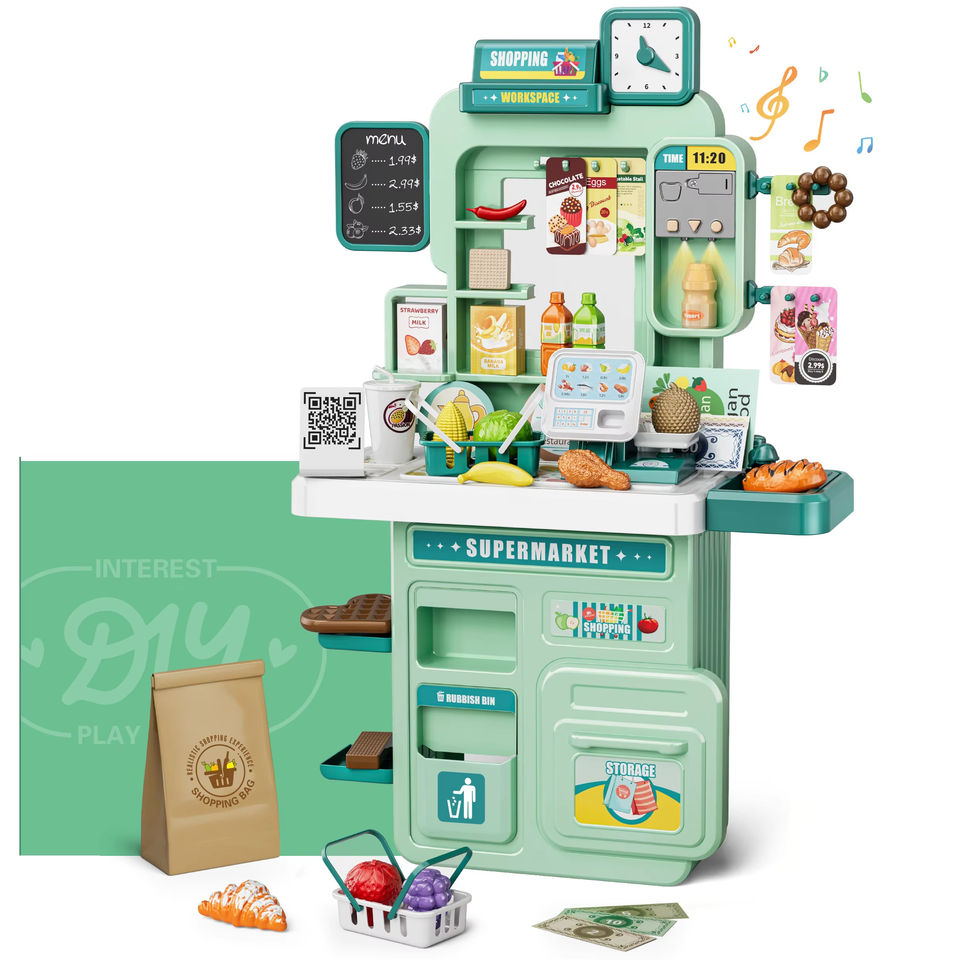 บ้านของเล่นปริศนาสำหรับเด็ก ชุดเชฟทำอาหาร 61 ซม. ของเล่นช็อปปิ้งอาหารจานด่วน ร้านขนมหวาน ของเล่นครัว ซูเปอร์มาร์เก็ต ของเล่นโต๊ะอาหารสำหรับเด็ก