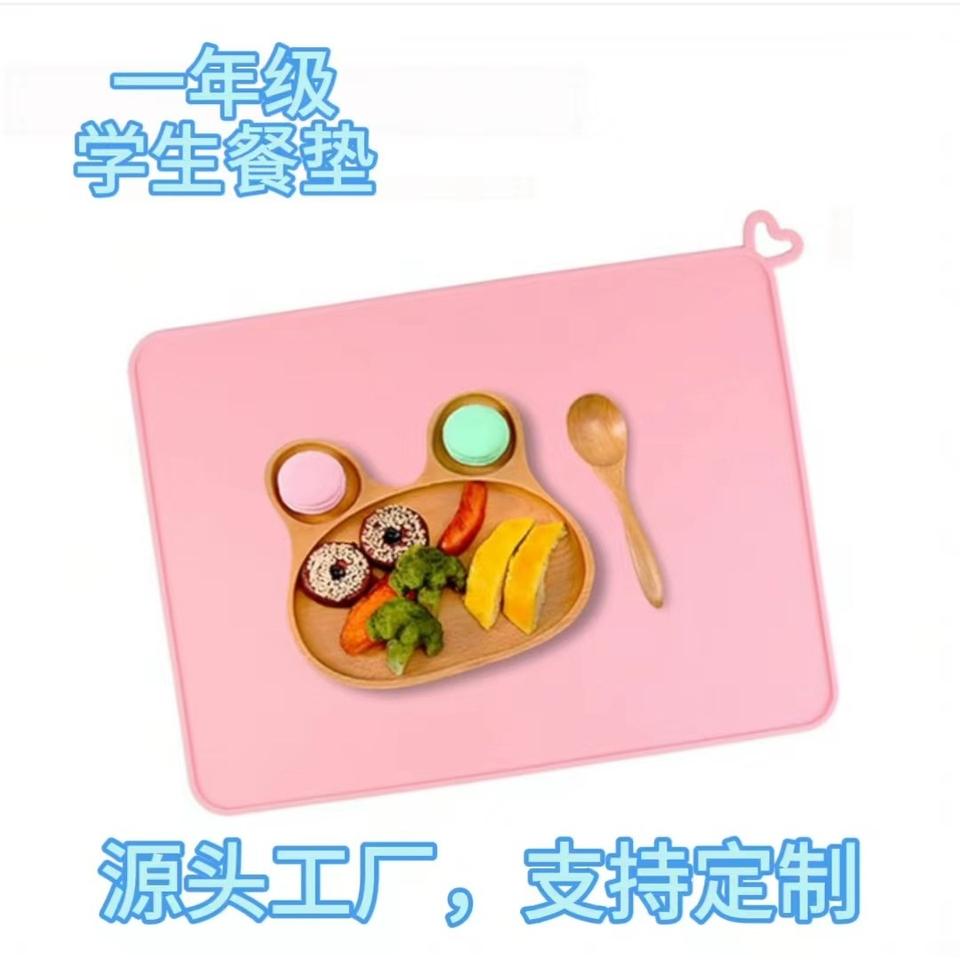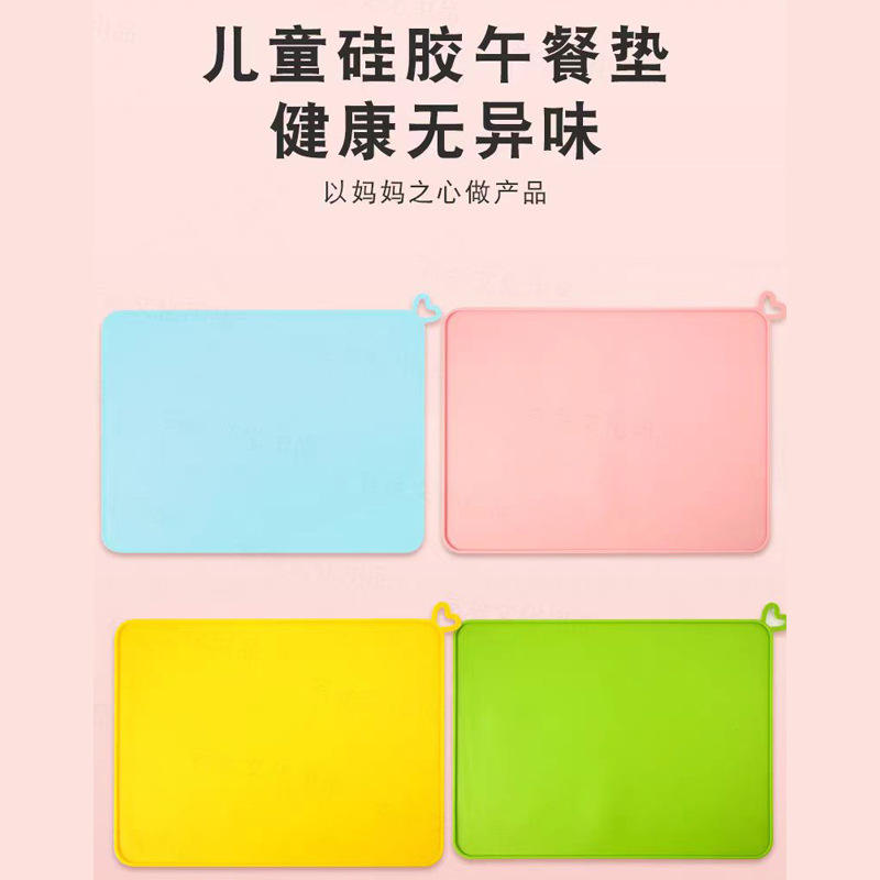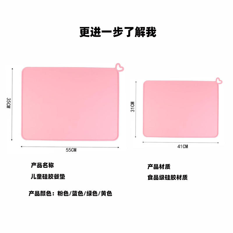 แผ่นรองจานซิลิโคนสำหรับเด็กทรงสี่เหลี่ยมรูปหัวใจกันน้ำกันน้ำมันทนความร้อนล้างทำความสะอาดได้สำหรับโต๊ะรับประทานอาหารเด็กอายุ 4 ปีขึ้นไป