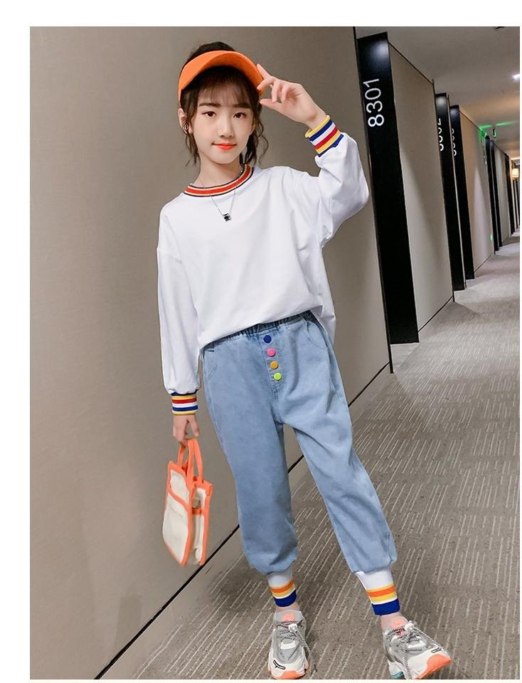 ชื่อสินค้า:ชุดกางเกงยีนส์สีน้ำเงินสำหรับเด็กผู้หญิง สไตล์ผู้หญิง ผลิตจากผ้าฝ้ายแท้