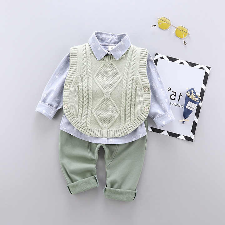 ชุดเสื้อกันหนาว เสื้อเชิ้ต กางเกง สำหรับเด็กชาย เด็กหญิง แบบสามชิ้น
