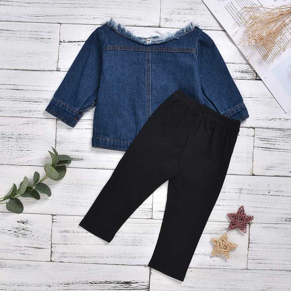 ชุดเด็กผู้หญิง เสื้อเชิ้ตสีขาว ชุดเดรสยีนส์แบบไม่มีสายรัด ชุดเด็กผู้หญิงแบบเรียบง่าย กางเกงเลกกิ้ง เสื้อผ้าแขนยาว