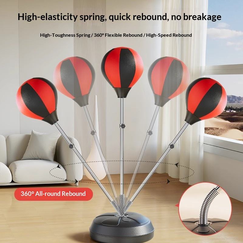 ลูกบอลชกมวยสำหรับเด็ก แบบตั้งพื้น ฝึกปฏิกิริยาตอบสนองเร็ว อุปกรณ์ออกกำลังกายที่บ้าน ลดความเครียด กระสอบทรายเด้งกลับ