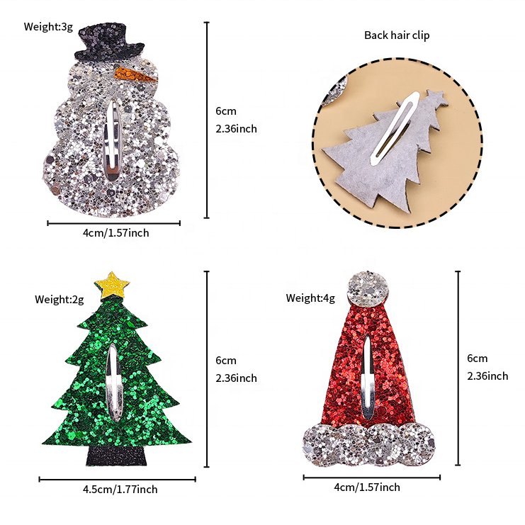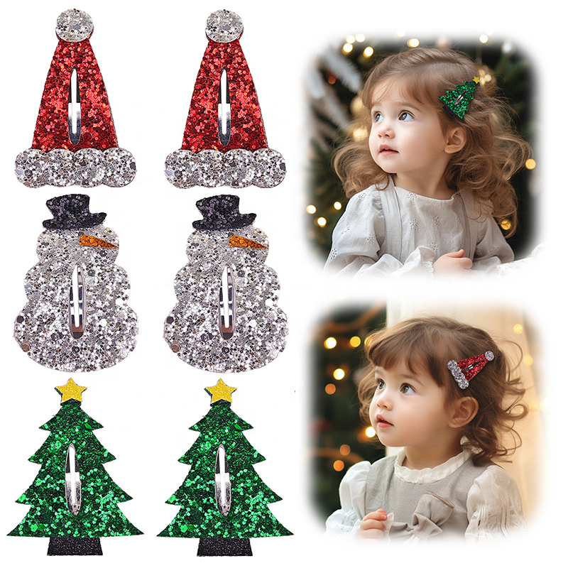 กิ๊บติดผมรูปต้นคริสมาสต์สำหรับเด็กหมวกมนุษย์หิมะวันฮาโลวีนคลิปหนีบผมแวววาว