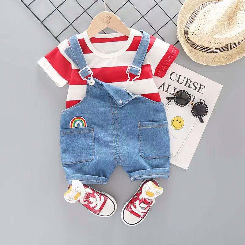 ชุดเด็กผู้ชาย เสื้อผ้าเด็ก ชุดลำลอง ชุดยีนส์จั๊มสูท ชุดเสื้อผ้าแบบมิกซ์แอนด์แมทช์ ชุด 2 ชิ้น
