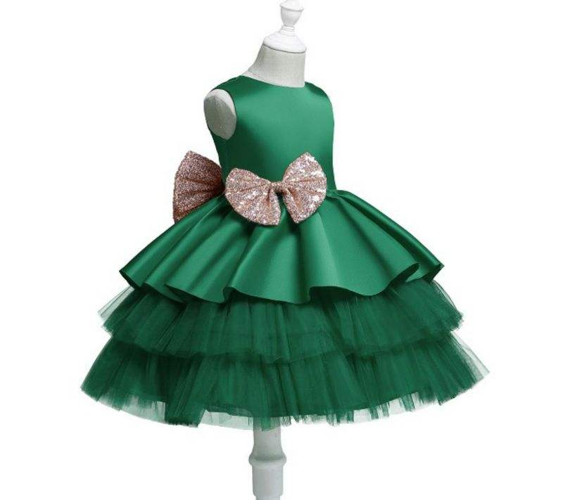 ชุดเด็กผู้หญิง ชุดไปงานปาร์ตี้ ชุดแต่งงาน ชุดราตรีเจ้าหญิง ชุดลูกไม้ แขนกุด กระโปรงระบายเป็นชั้นๆ