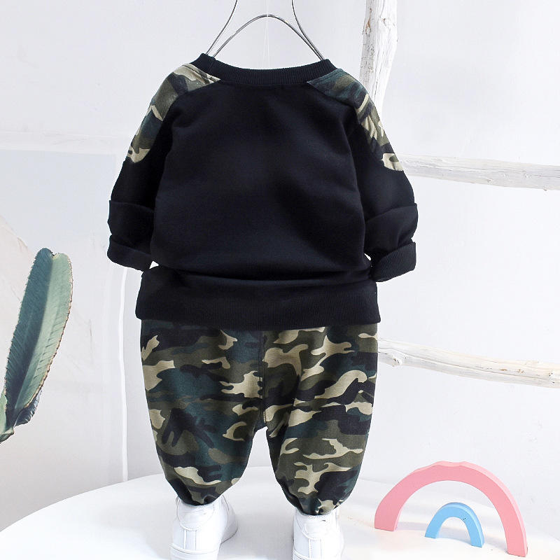 ชุดเสื้อผ้าเด็กผู้ชายแขนยาวลายพราง กางเกงและเสื้อ ชุดเซ็ต 2 ชิ้น สำหรับเด็ก