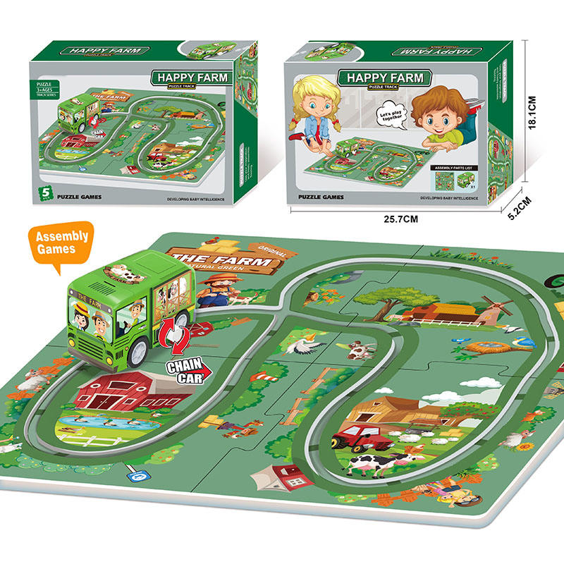 ชุดแข่งปริศนาพลาสติกสำหรับเด็กเพื่อการศึกษาของเล่นรถจิ๊กซอว์