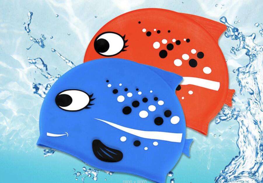 หมวกว่ายน้ำรูปปลาสำหรับเด็ก, หมวกว่ายน้ำซิลิโคนมืออาชีพน่ารักพิมพ์ลายสำหรับเด็กชายและเด็กหญิงผมยาวกันน้ำ