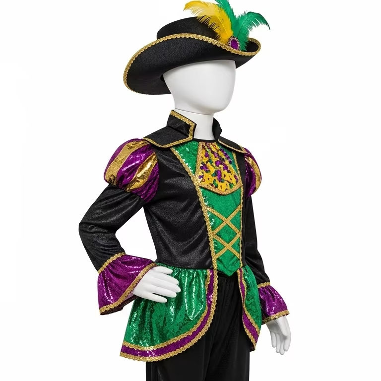 ชุดเด็กมาร์ดิกราส์ชุดแฟนซีสีสันสดใสชุดรูปแบบตัวละครภาพยนตร์ชุดคอสเพลย์สำหรับการแสดงบนเวที