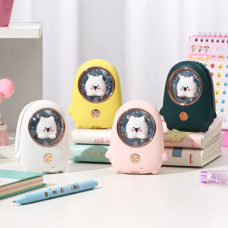 พัดลมมือถือไฟฟ้าแบบชาร์จไฟได้พร้อมเชือกแขวนพัดลมขนาดเล็กรูปนักบินอวกาศน่ารัก USB