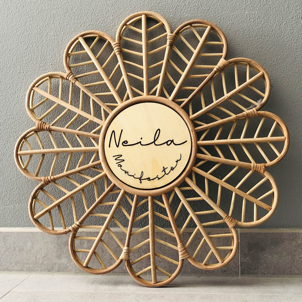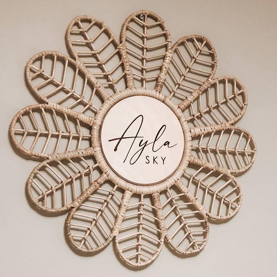 ป้ายแขวนผนังทำจากไม้หวายสำหรับตกแต่งห้องสำหรับเด็กป้ายชื่อธรรมชาติ