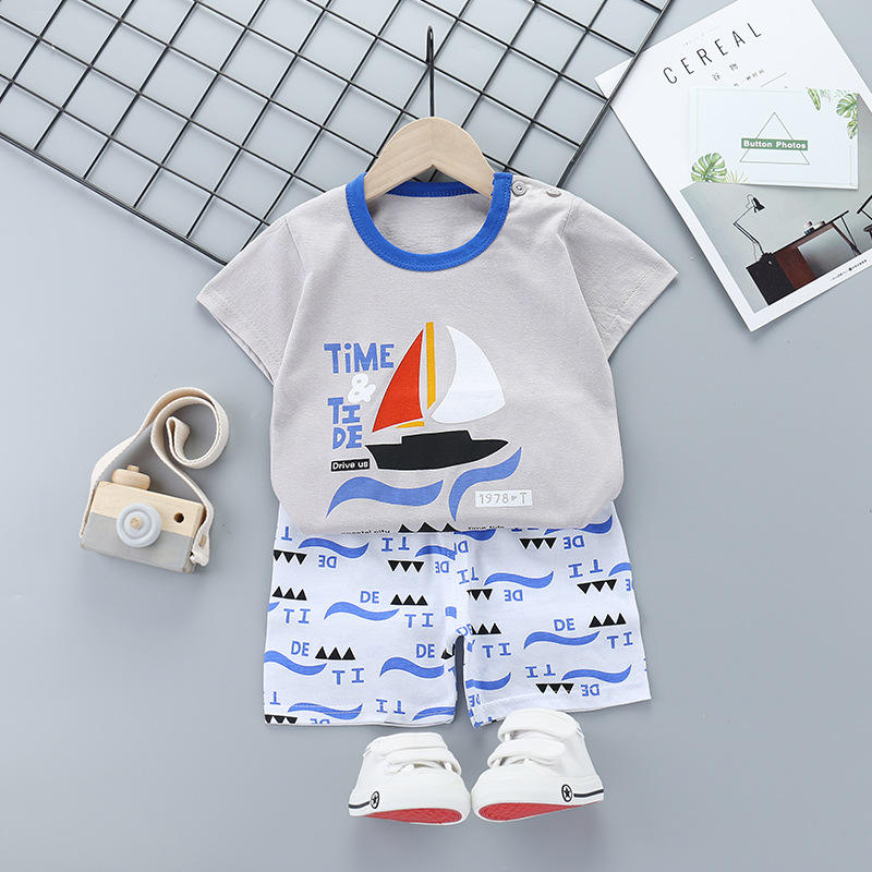 ชุดเด็กแขนสั้นผ้าฝ้ายฤดูร้อนใหม่สไตล์เกาหลี เสื้อยืดเด็กผู้หญิง กางเกงขาสั้นเด็กผู้ชาย เสื้อผ้าเด็ก