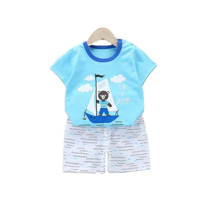 ชุดเด็กแขนสั้นผ้าฝ้ายฤดูร้อนใหม่สไตล์เกาหลี เสื้อยืดเด็กผู้หญิง กางเกงขาสั้นเด็กผู้ชาย เสื้อผ้าเด็ก