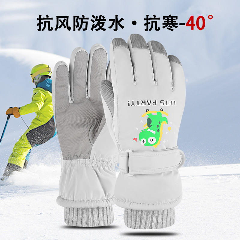 ถุงมือสกีสำหรับเด็กหน้าจอสัมผัสอุ่นๆ กันน้ำสำหรับเด็กเล่นปั่นจักรยานกลางแจ้งในฤดูหนาว
