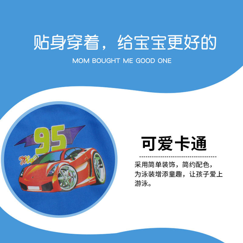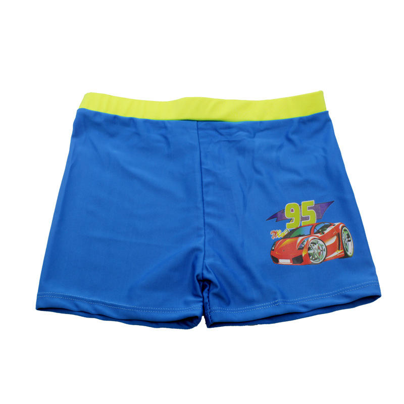 กางเกงว่ายน้ำเด็ก สีฟ้า พิมพ์ลายรถยนต์ แห้งเร็ว สำหรับเด็กผู้ชาย ว่ายน้ำในฤดูร้อน