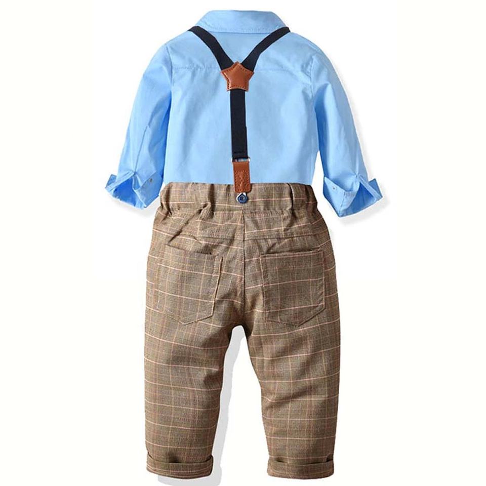 ชุดเด็กแบบยูนิเซ็กซ์ เสื้อผ้าสไตล์ชุดนักเรียน ชุดเสื้อ กางเกงเอี๊ยม ชุดนักเรียนประถม ชุดคอสตูม ผ้าโพลีเอสเตอร์ 100%