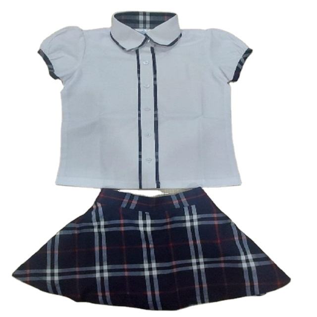 ชุดนักเรียนเด็กผู้หญิงปี 2023 เสื้อเชิ้ตสีขาวลายตารางพร้อมกระโปรงและโบว์