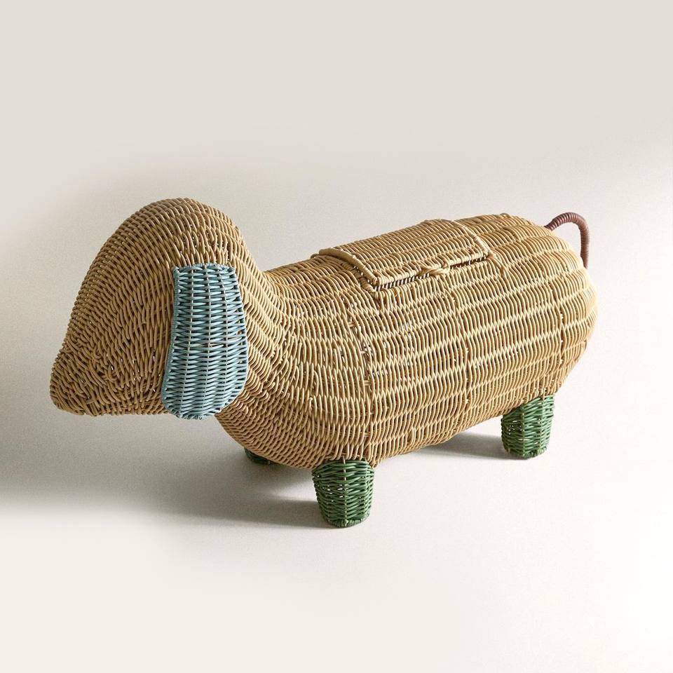 ตะกร้าหวายรูปสุนัขสำหรับเด็ก สองสี ตะกร้าจัดระเบียบของใช้เด็กเล็ก