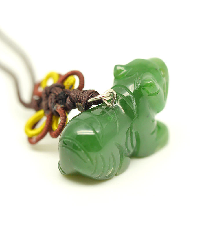 Chinese Zodiac Tiger Green Jade Charm Pendant