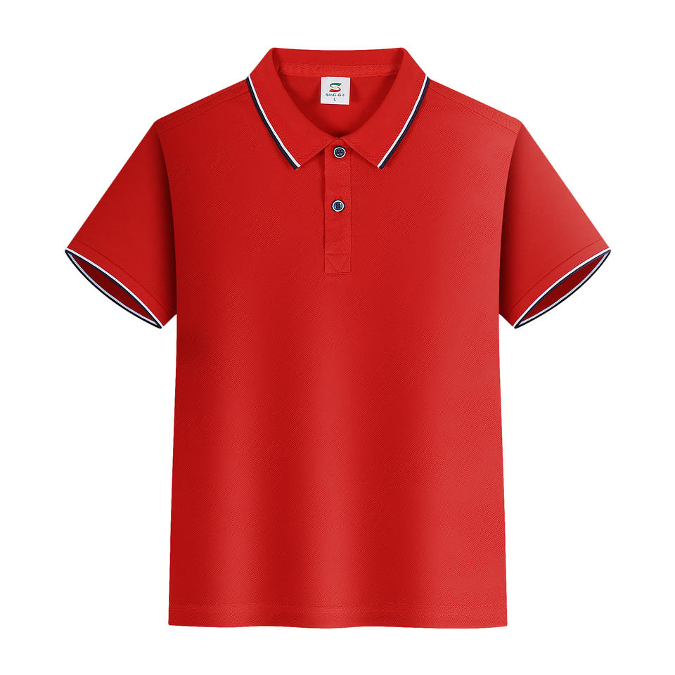 เสื้อโปโลเด็ก ผ้าคอตตอน 60% ใยสังเคราะห์ 40% แบบถัก สวมใส่สบาย พร้อมโลโก้สั่งทำพิเศษ น้ำหนัก 200 กรัม ดีไซน์แบบอัดแน่น