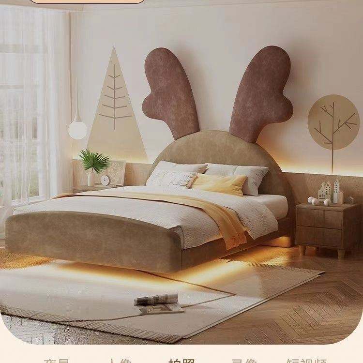 เตียงเด็กสำหรับเด็กชายและเด็กหญิงเตียงการ์ตูนผ้ากำมะหยี่แขวนเตียงเดี่ยวทำจากไม้เนื้อแข็งขนาด1.5เมตรแบบเรียบง่ายสไตล์ครีมกวาง