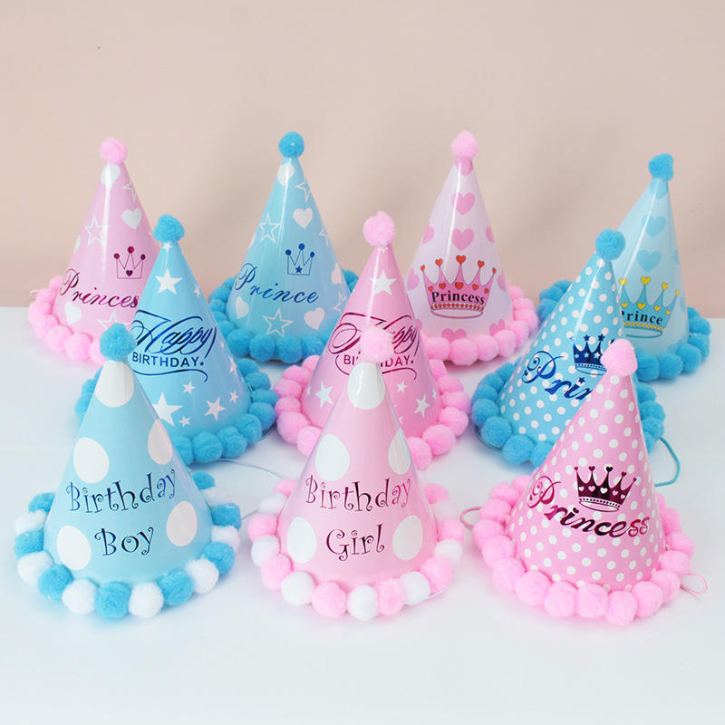 หมวกปาร์ตี้วันเกิดเด็ก พร้อมพู่ประดับ หมวกทรงกรวยสำหรับเด็กหญิงเด็กชาย ตกแต่งงานฉลองวันเกิด