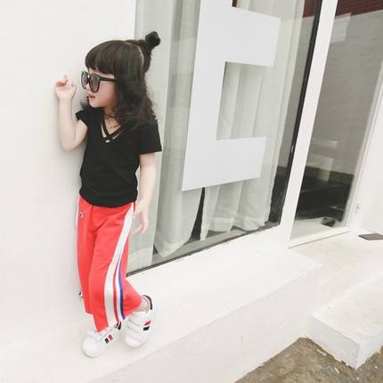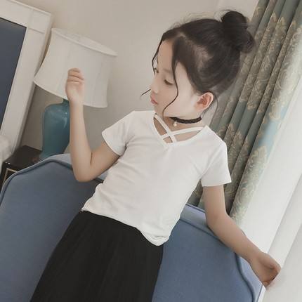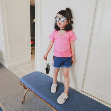 ชื่อ:เสื้อยืดเด็กทรงคอวีสไตล์วินเทจแบบเรียบง่าย
