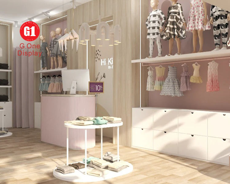 การออกแบบตกแต่งภายในร้านขายเสื้อผ้าเด็ก แผนการจัดวางเฟอร์นิเจอร์ ตกแต่งร้านค้าเสื้อผ้าเด็กคุณภาพสูง