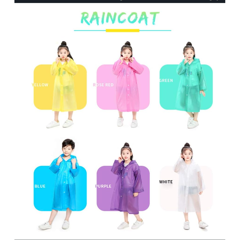 เสื้อกันฝน EVA สำหรับเด็กพร้อมฮู้ดขนาด XL น้ำหนักเบากันลมกันฝนใช้ซ้ำได้ฟรีไซส์สำหรับกลับไปโรงเรียน