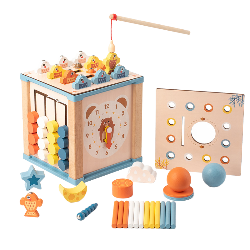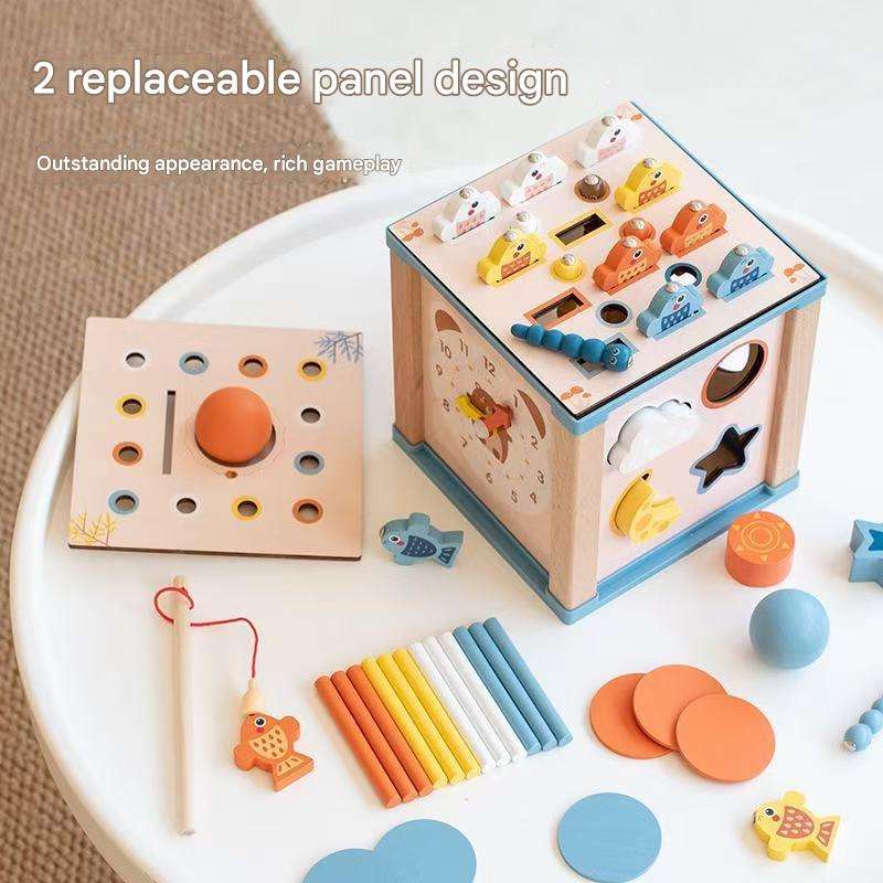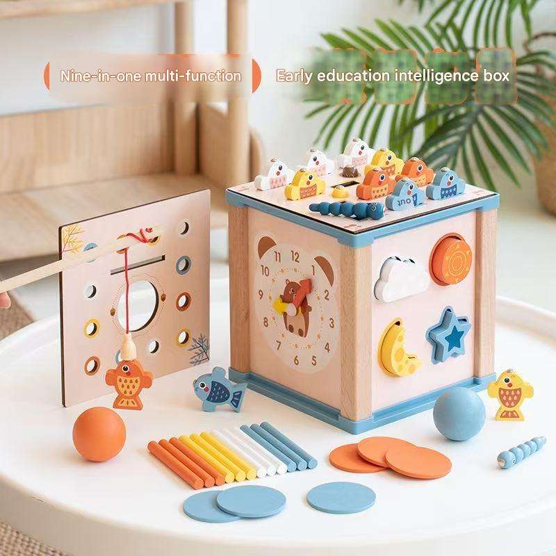 กล่องอัจฉริยะเสริมพัฒนาการเด็กเล็ก ฝึกทักษะการจับคู่รูปทรง ตกปลา เกมฝึกการเคลื่อนไหวสี่สี 9 in 1
