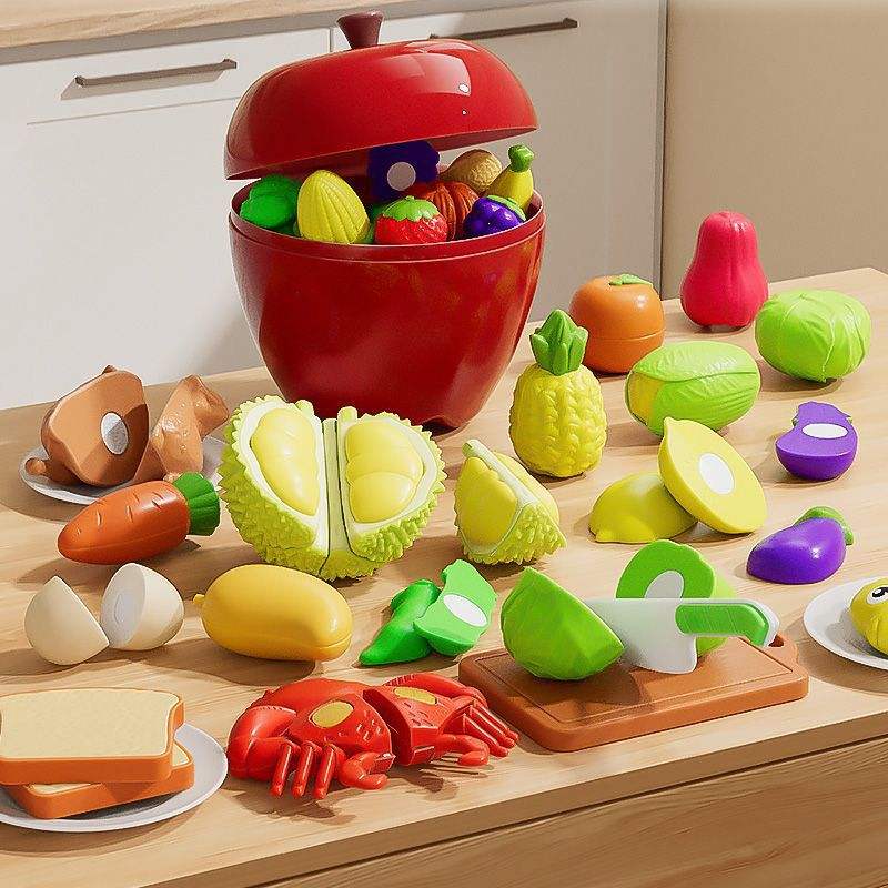 ชุดของเล่นในครัวของเล่นเพื่อการศึกษาสำหรับเด็กของเล่นจำลองพลาสติกตัดผักผลไม้เพลงเปลือกเด็กเวียดนาม