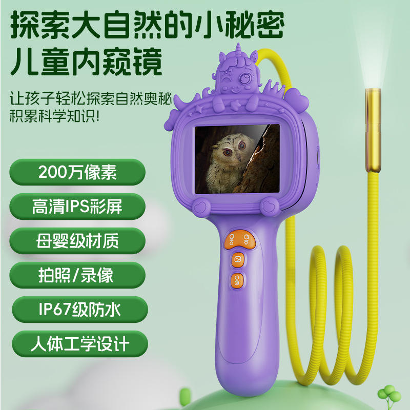 กล้องเอนโดสโคปสำหรับเด็ก 2MP HD ถ่ายภาพมาโคร ของเล่นสำรวจกลางแจ้ง พร้อมอินเทอร์เฟซ USB2.0 ดีไซน์กันน้ำ