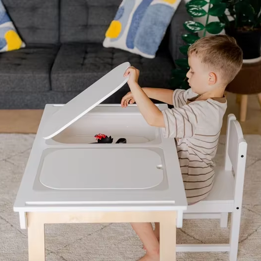 โต๊ะพับสำหรับกิจกรรมของเด็กพร้อมฝาปิดโรงละครไม้อัดเบิร์ชประสาทสัมผัส