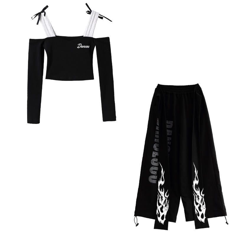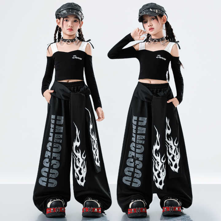 เสื้อแขนยาวเด็กผู้หญิงลายพิมพ์แจ๊สและทิเบตันมาสติฟ สไตล์ Y2K ผ้าถักสำหรับฤดูหนาว ตกแต่งด้วยคริสตัล สีดำ