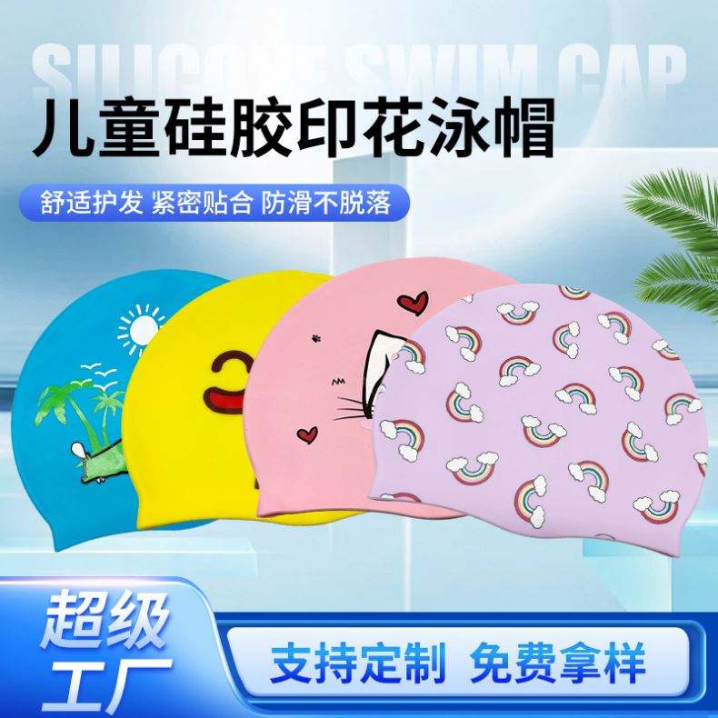 หมวกว่ายน้ำไร้หัวยืดหยุ่นสูงสำหรับเด็ก, ใหม่หมวกลายการ์ตูนแนวข้ามพรมแดนวัสดุซิลิโคนสำหรับฝึกซ้อมแฟชั่น USA