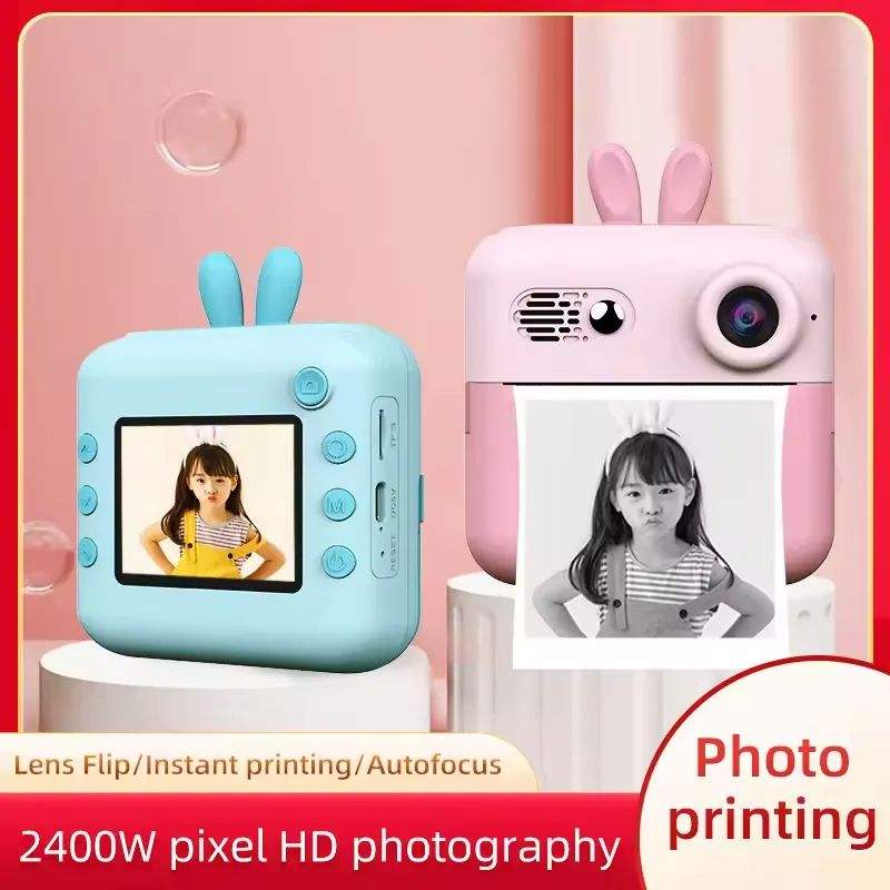 กล้องถ่ายรูปสำเร็จรูปสำหรับเด็ก พิมพ์ภาพความร้อน วิดีโอ HD ขนาดพกพา หน้าจอ 2.4 นิ้ว