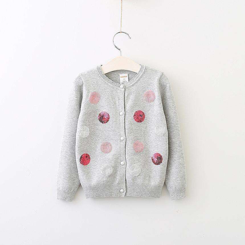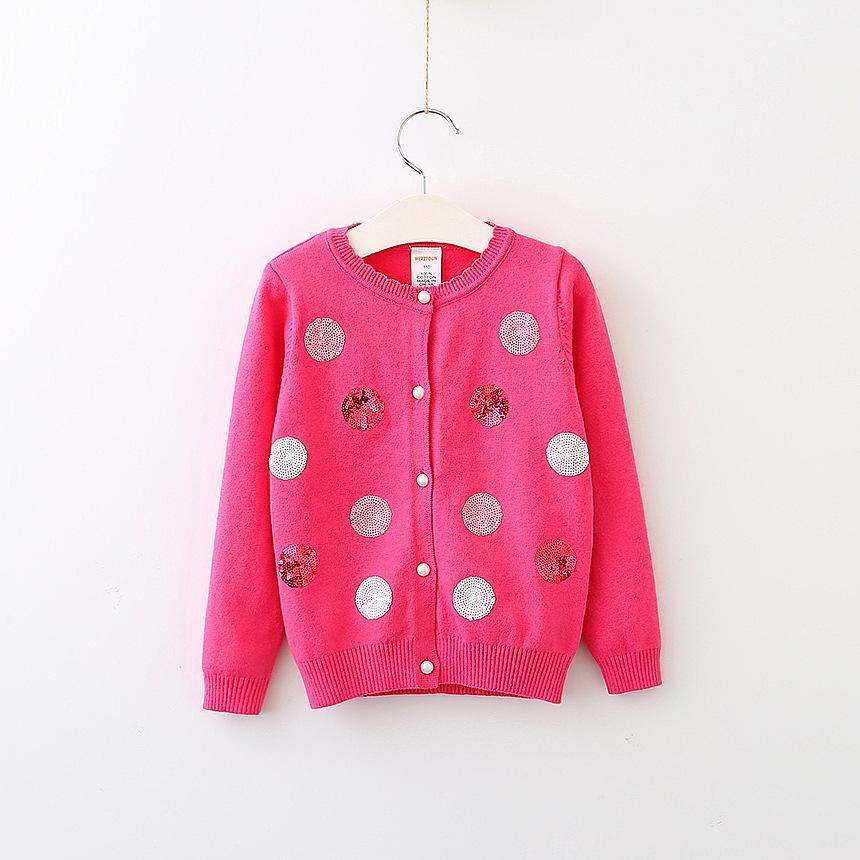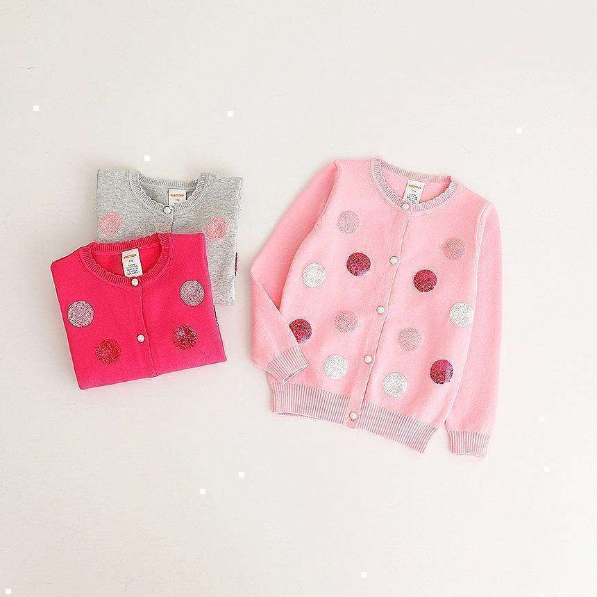เสื้อคาร์ดิแกนเด็กสไตล์เกาหลีสีชมพูประดับลายจุดวิบวับจากโรงงานจีน