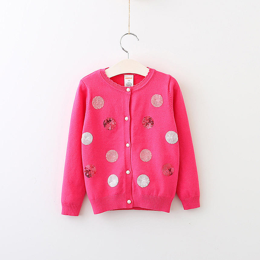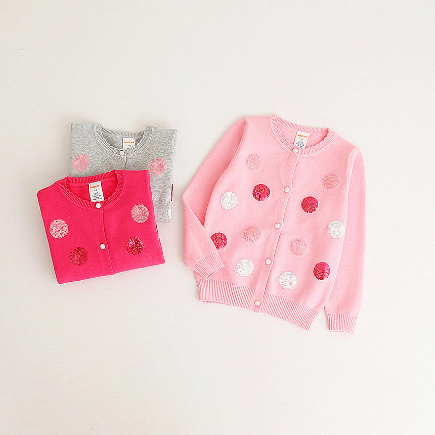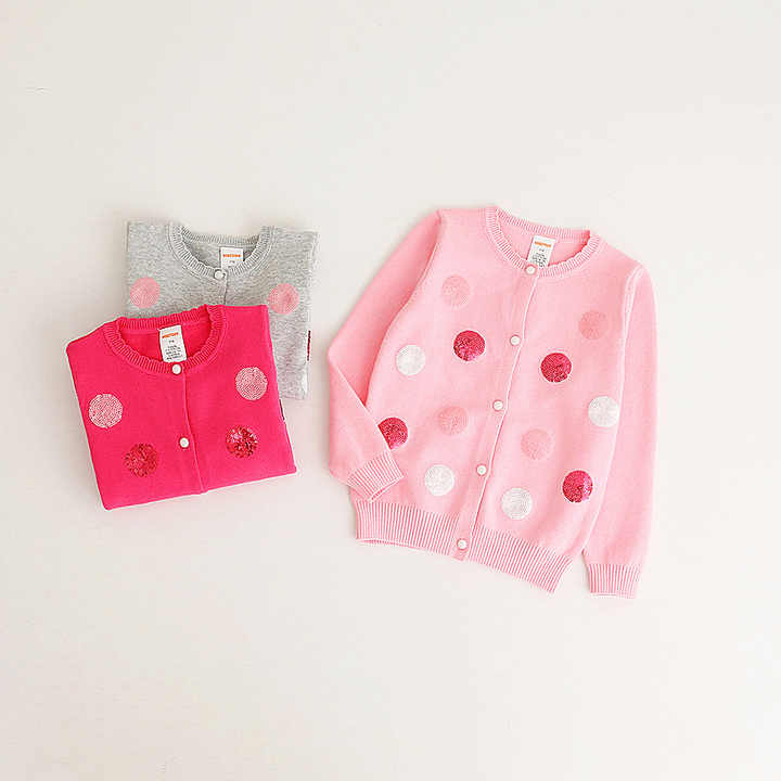 เสื้อคาร์ดิแกนเด็กสไตล์เกาหลีสีชมพูประดับลายจุดวิบวับจากโรงงานจีน