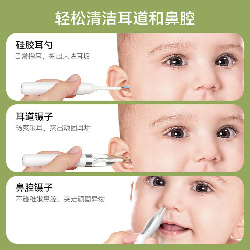 เครื่องมือทำความสะอาดหูและจมูกแบบส่องกล้องพร้อมไฟสำหรับเด็ก ช่วยดูแลลูกน้อย