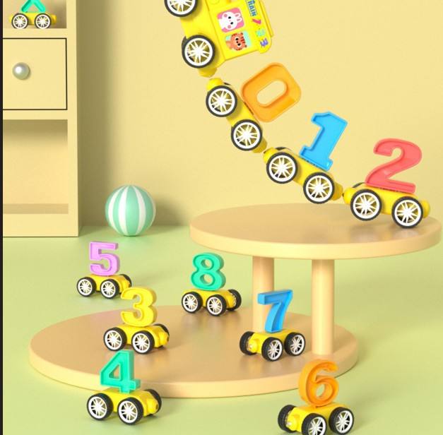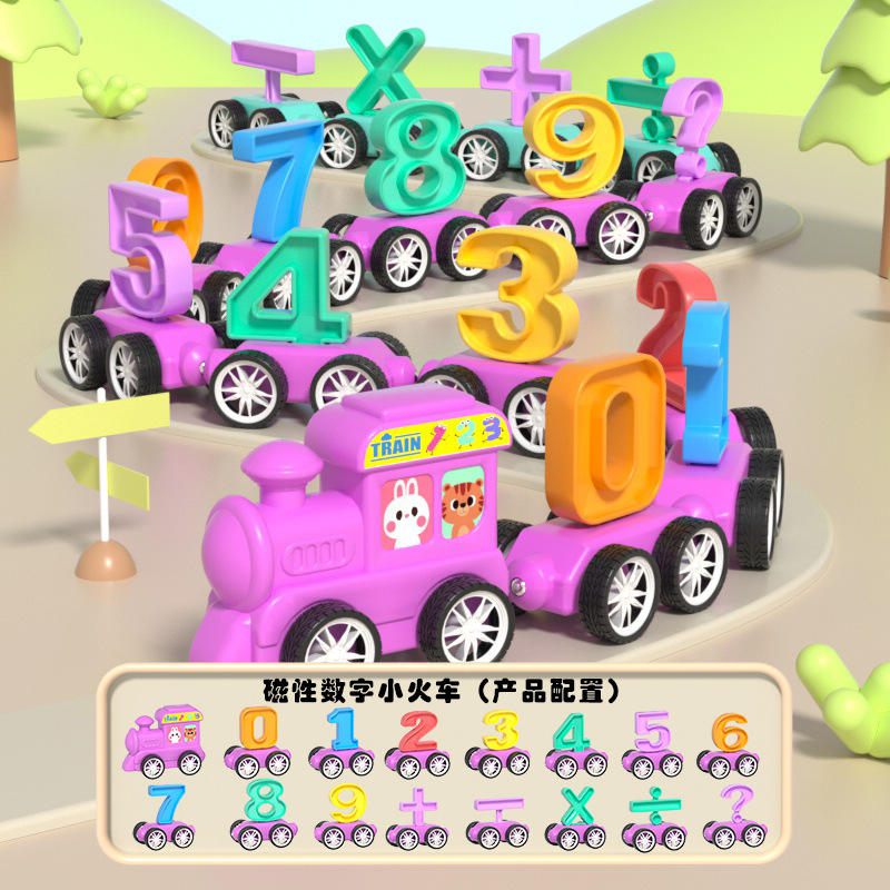รถไฟแม่เหล็กตัวเลขสำหรับเด็ก ตัวอักษรแม่เหล็ก ของเล่นบล็อกลาก รถของเล่นเสริมพัฒนาการด้านคณิตศาสตร์และการคำนวณสำหรับเด็กเล็ก