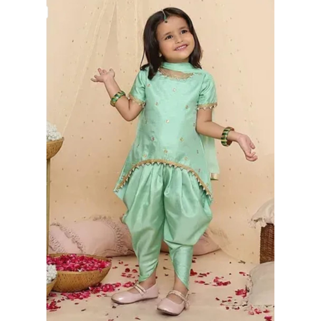 ชุดเลเฮนกาโชลีผ้าไหมสีเขียวมิ้นท์สำหรับเด็กผู้หญิง ชุดทันสมัย น้ำหนักเบา เหมาะสำหรับงานปาร์ตี้