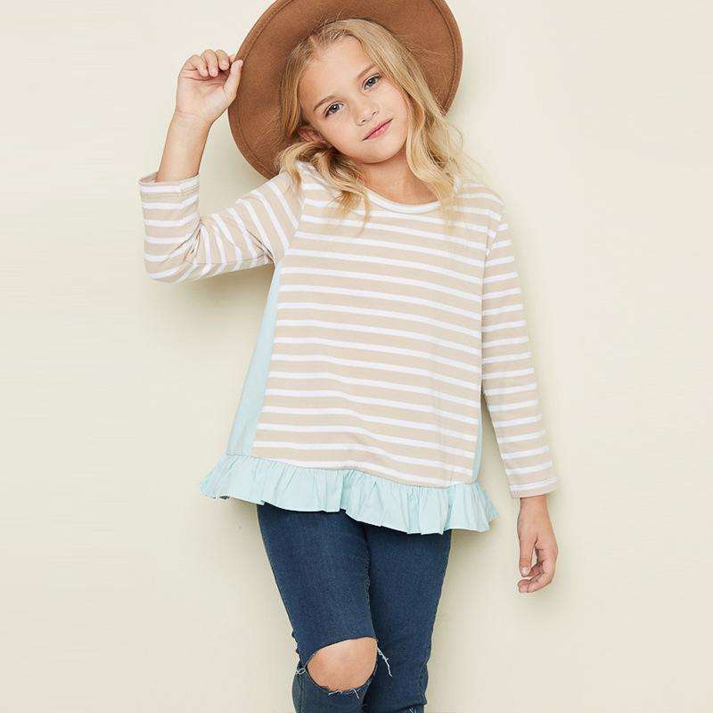 เสื้อยืดแขนยาวลายทางหลากสีสำหรับเด็กแบบปรับแต่งได้